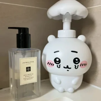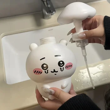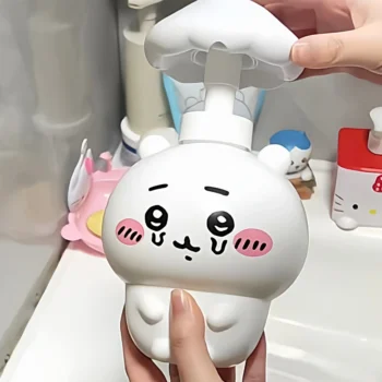Make handwashing and bath time irresistibly adorable with this charming Chiikawa Bath Soap Dispenser! Featuring the beloved tiny main character Chiikawa – with his signature round body, big sparkling eyes, shy smile, and gentle charm – often joined by cheerful Hachiware or energetic Usagi in sweet bathroom-themed poses, this soap dispenser is crafted from high-quality, durable ABS plastic with vibrant full-color printing and a smooth, leak-proof pump mechanism. Perfect for sinks, bathtubs, showers, or kids’ bathrooms, it holds a generous amount of liquid soap while surrounding your routine with wholesome Chiikawa cuteness. Refillable, easy to clean, and overflowing with kawaii vibes, the Chiikawa Bath Soap Dispenser brings instant smiles and cozy joy to every wash!Bullet Points: