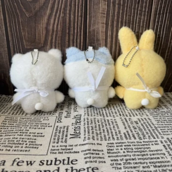 - Furry Usagi & Hachiware Design — Usagi in thick, soft rabbit fur texture and Hachiware with smooth blue plush fur – both featuring signature big eyes, tiny limbs, and adorable expressions.