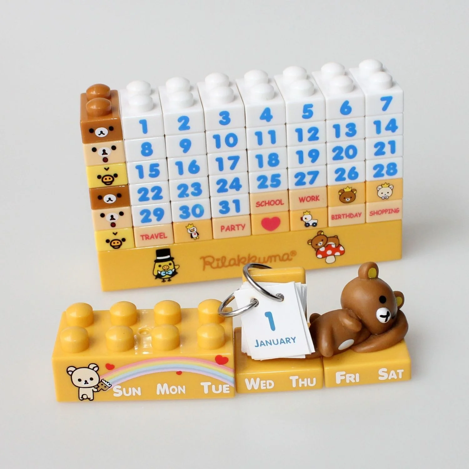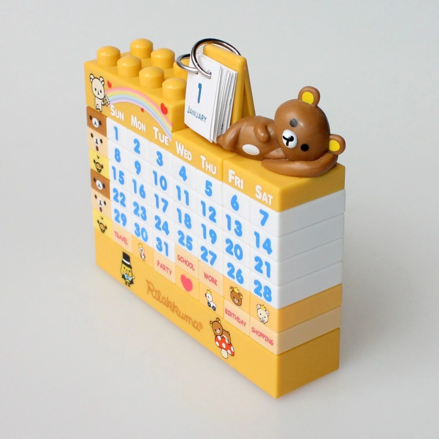 Plan your year with the adorable Cute Rilakkuma Calendar 2025! This unique perpetual desktop calendar combines the charm of Rilakkuma, the beloved San-X bear, with a fun DIY building blocks design. Perfect for anime fans and kawaii enthusiasts, the Rilakkuma Calendar 2025 serves as both a functional table calendar and a delightful decoration for your desk or shelf. Crafted with high-quality materials, this reusable calendar lets you customize and rebuild it year after year. Brighten your workspace or gift it to a loved one—this Rilakkuma Calendar 2025 is the ultimate blend of practicality and cuteness for 2025 and beyond!